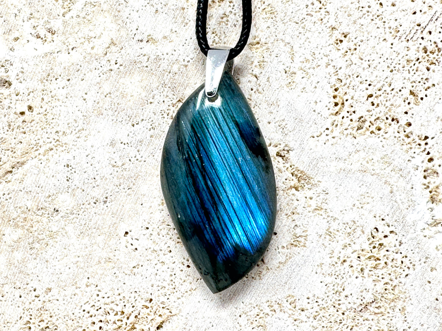 This piece of Labradorite Jewellery has been cut into a Free Shape Pendant and hand-polished to a fantastically high standard in our UK workshop.
