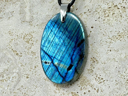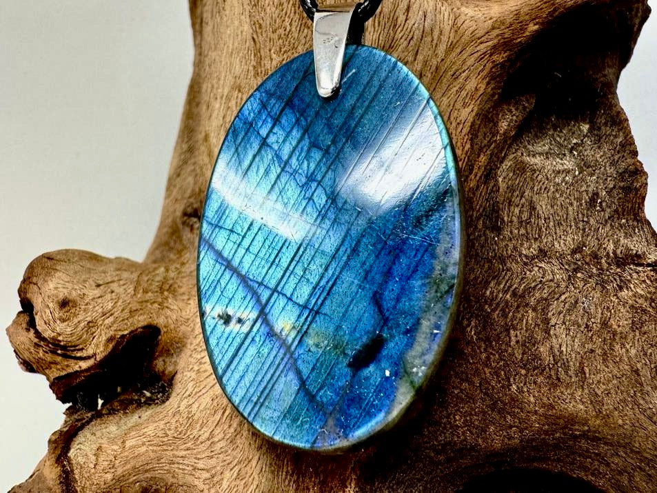This piece of Labradorite Jewellery has been cut into an Oval Pendant Shape and hand-polished to a fantastically high standard in our UK workshop.