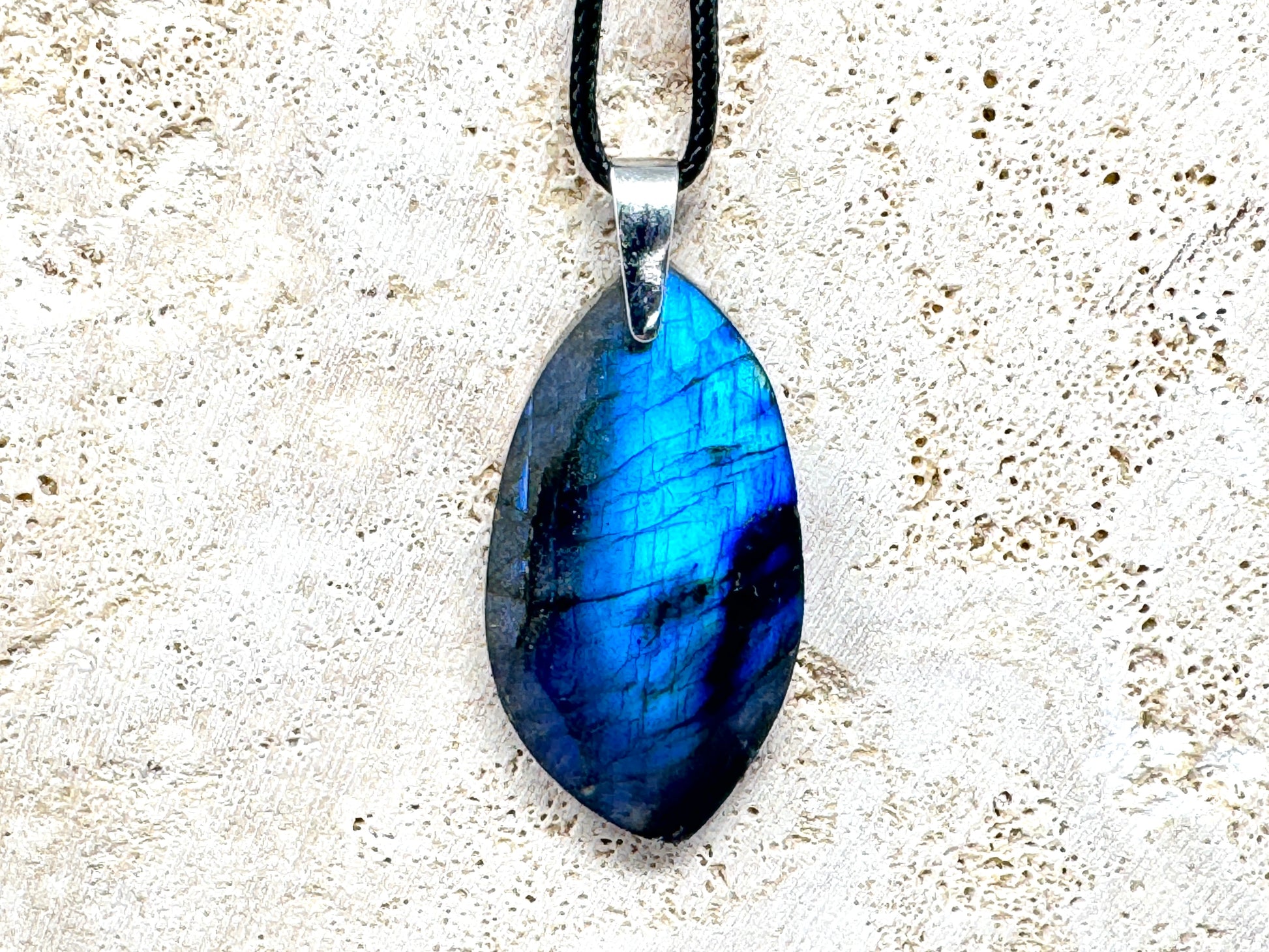 This piece of Labradorite Jewellery has been cut into a Free Shape Pendant and hand-polished to a fantastically high standard in our UK workshop.