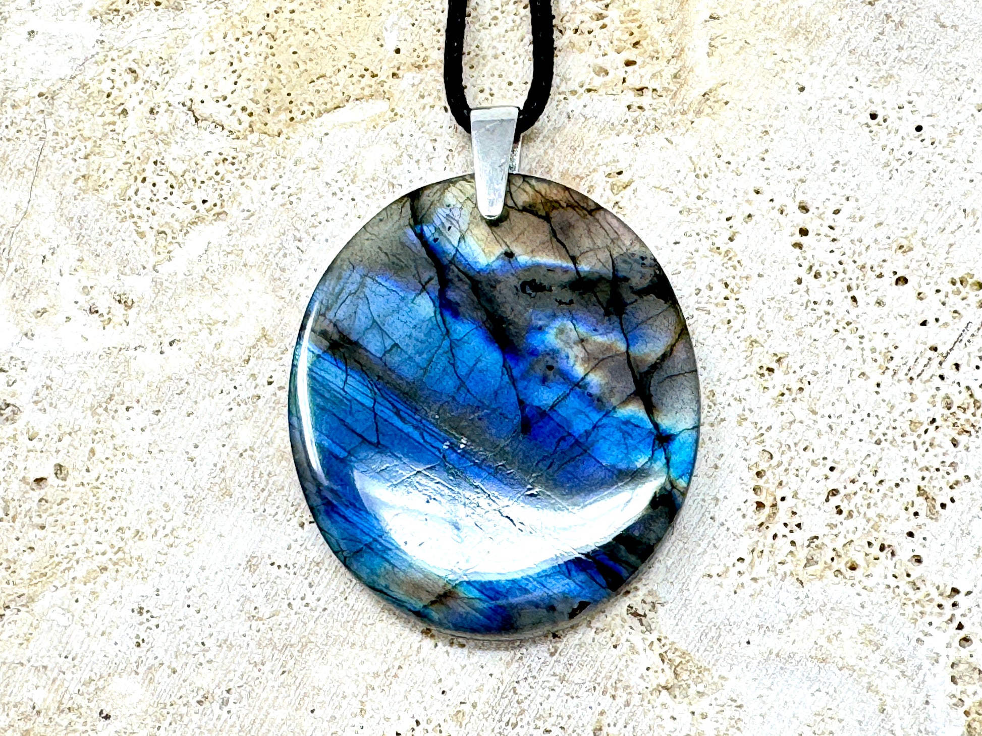 This piece of Labradorite Jewellery has been cut into a Oval Pendant Shape and hand-polished to a fantastically high standard in our UK workshop.