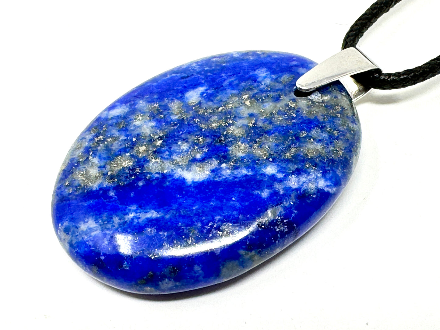 The Lapis Lazuli Pendant has been drilled and set with a Tarnish-Resistant Rhodium-Plated Stamped 925 Silver Bail, making it perfect for attaching to a chain to make a Lapis Lazuli Necklace and other types of Lapis Lazuli Jewellery.