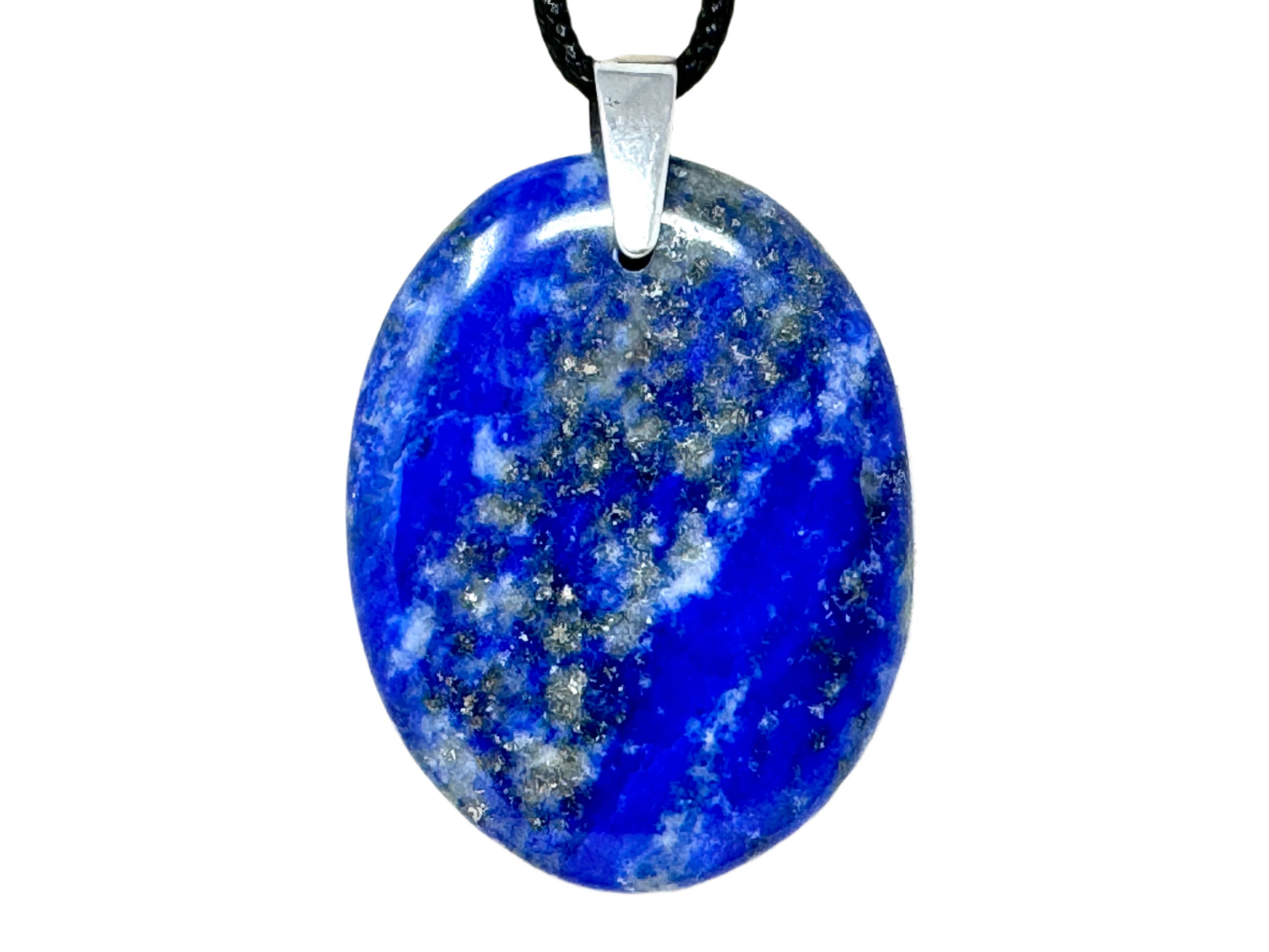 This unique piece of Hand-Made Crystal Jewellery has been cut from Natural Lapis Lazuli Stone into an Oval Pendant Shape and hand-polished to a fantastically high standard in our UK workshop to create a smooth Polished Lapis Lazuli Crystal Pendant.