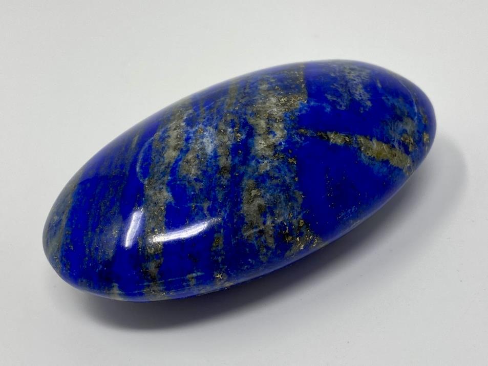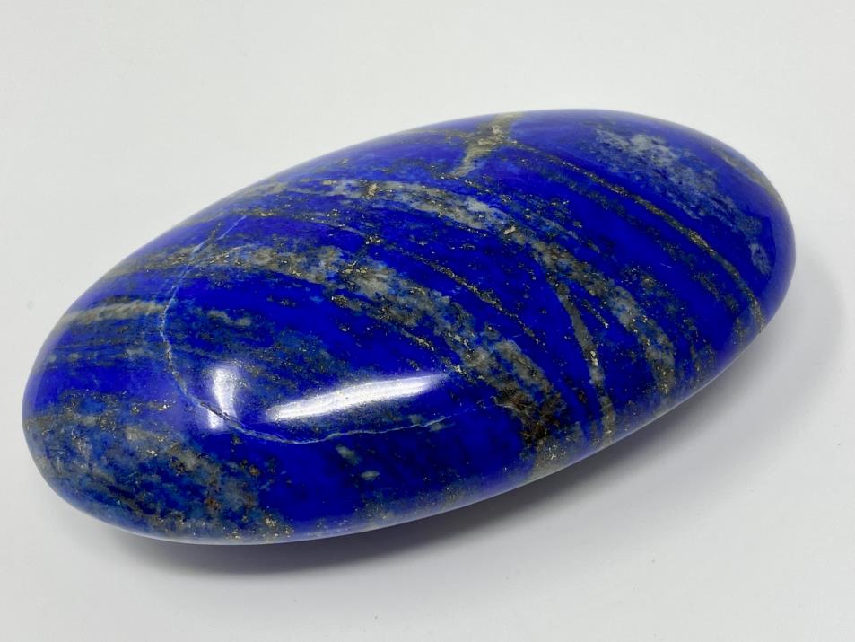 This gorgeous, high-grade Large Lapis Lazuli Crystal Pebble (or Large Lapis Lazuli Crystal Palm Stone) measures 9.7cm long and displays the beautiful deep blue and gold colouring which Lapis Lazuli has been revered for since pre-history.