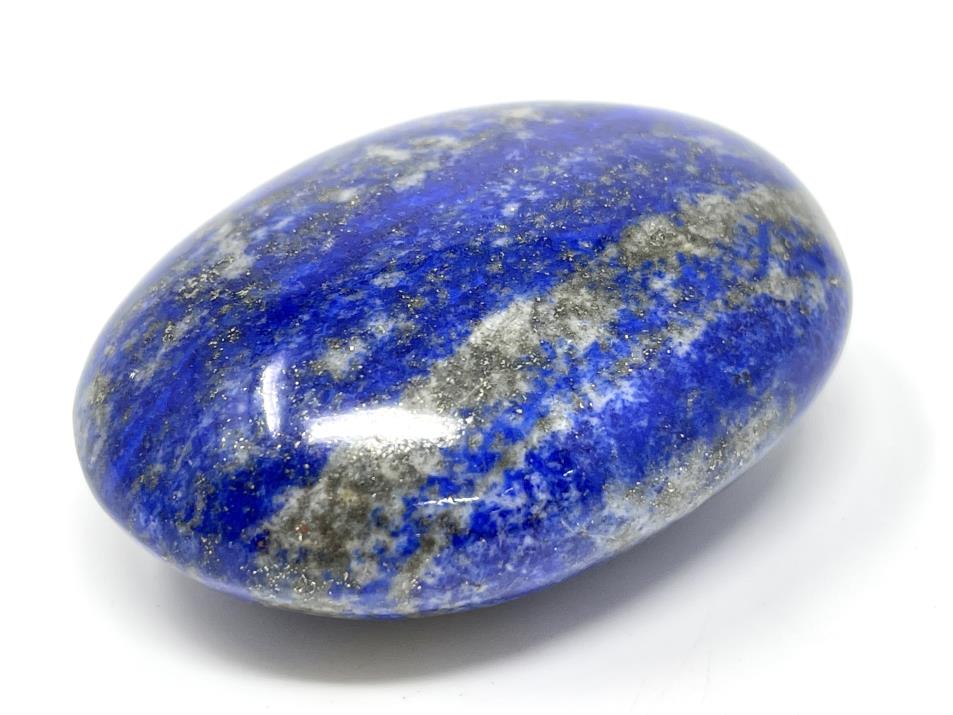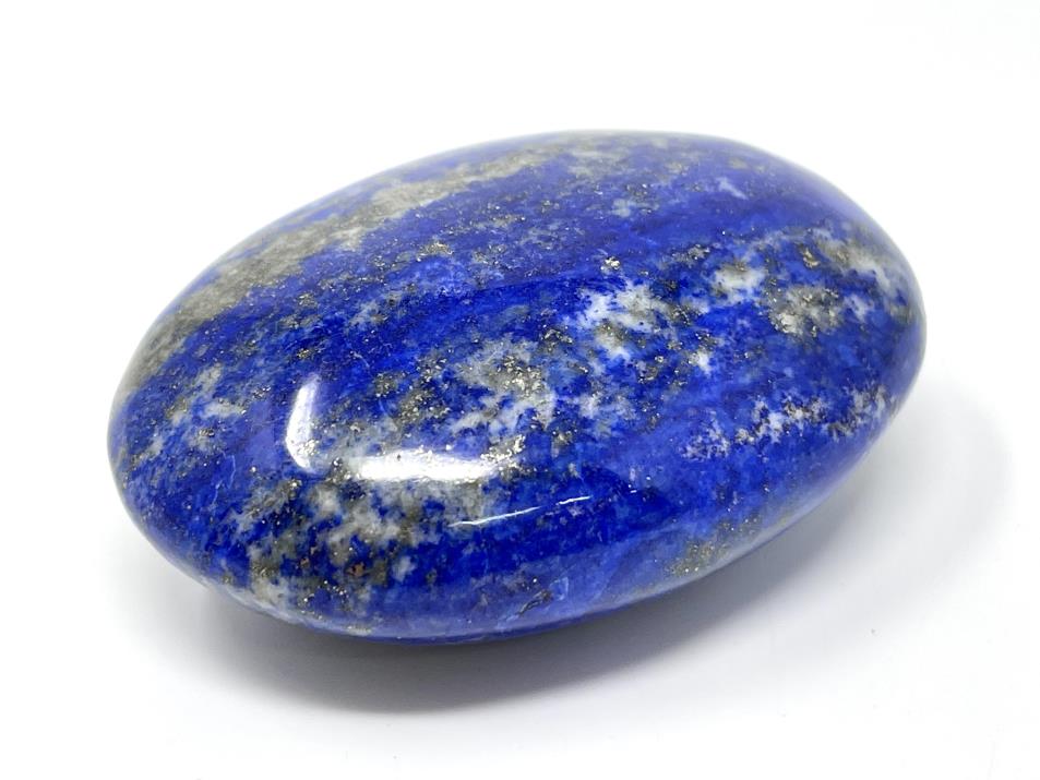 This gorgeous, high-grade Lapis Lazuli Crystal Pebble (or Lapis Lazuli Crystal Palm Stone) measures 6.9cm long and displays the beautiful deep blue and gold colouring which Lapis Lazuli has been revered for since pre-history.