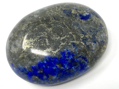 This gorgeous, high-grade Lapis Lazuli Crystal Pebble (or Lapis Lazuli Crystal Palm Stone) measures 6.1cm long and displays the beautiful deep blue and gold colouring which Lapis Lazuli has been revered for since pre-history.