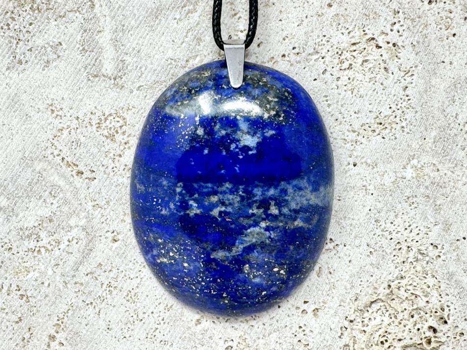 This gorgeous, high-quality, hand-made Large Oval Lapis Lazuli Pendant (or Large Lapis Lazuli Crystal Pendant) measures 5.3cm long and displays the beautiful deep blue and gold colouring which Lapis Lazuli has been revered for since pre-history.