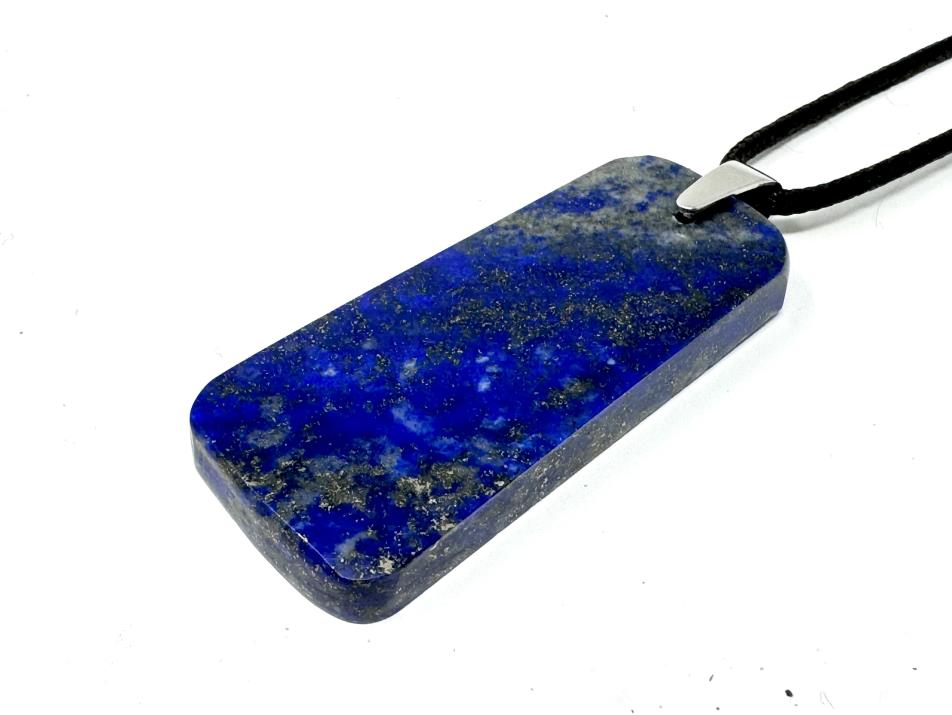 This unique piece of Hand-Made Crystal Jewellery has been cut from Natural Lapis Lazuli Stone into a Ingot Pendant Shape and hand-polished to a fantastically high standard in our UK workshop to create a smooth Polished Lapis Lazuli Crystal Pendant.