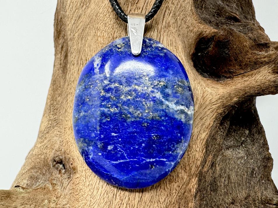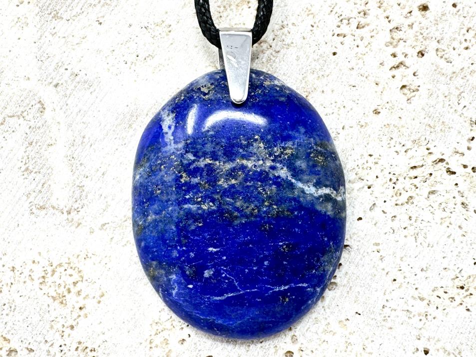 This unique piece of Hand-Made Crystal Jewellery has been cut from Natural Lapis Lazuli Stone into an Oval Pendant Shape and hand-polished to a fantastically high standard in our UK workshop to create a smooth Polished Lapis Lazuli Crystal Pendant.