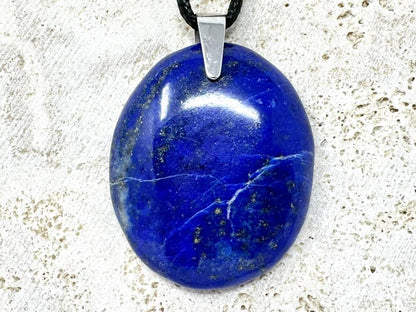 This unique piece of Hand-Made Crystal Jewellery has been cut from Natural Lapis Lazuli Stone into an Oval Pendant Shape and hand-polished to a fantastically high standard in our UK workshop to create a smooth Polished Lapis Lazuli Crystal Pendant.