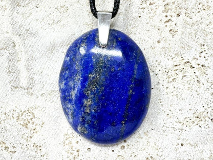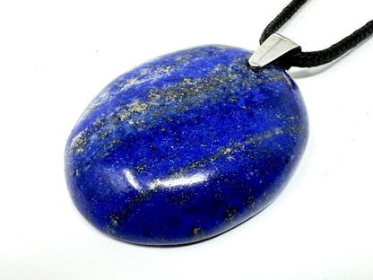 This unique piece of Hand-Made Crystal Jewellery has been cut from Natural Lapis Lazuli Stone into an Oval Pendant Shape and hand-polished to a fantastically high standard in our UK workshop to create a smooth Polished Lapis Lazuli Crystal Pendant.