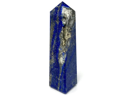 The Natural Lapis Lazuli Stone has been carefully cut into a blue crystal tower shape (or blue crystal obelisk shape) and hand-polished to create a smooth Polished Lapis Lazuli Crystal Tower or Lapis Lazuli Crystal Obelisk with a glistening finish.