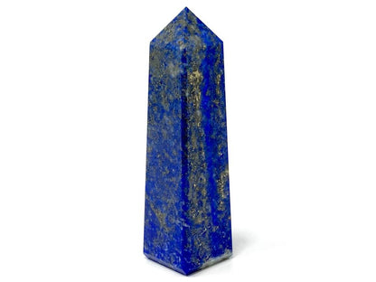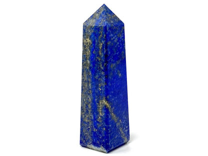 This gorgeous, high-grade Lapis Lazuli Tower Crystal (also known as a Lapis Lazuli Obelisk Crystal) measures 9.6cm tall and displays the beautiful deep blue and gold colouring which Lapis Lazuli has been revered for since pre-history.
