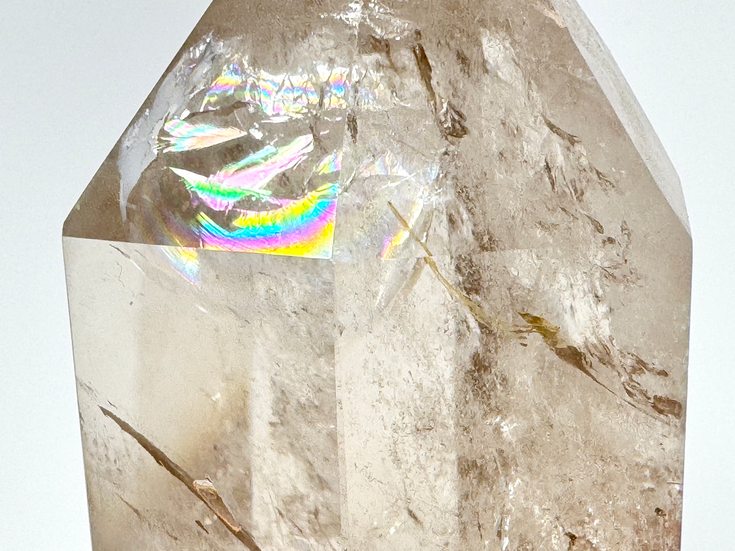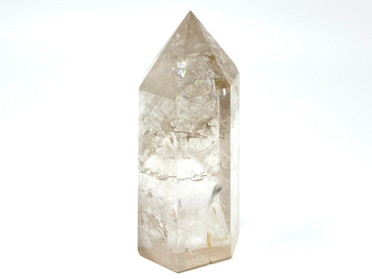 This Large Clear Quartz Crystal Point also displays some shimmering Quartz crystal rainbows.