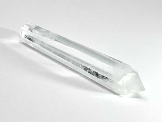 This gorgeous Large Natural Ended Clear Quartz Point measuring 15.9cm long is very bright, clear and vibrant, and has been cut from a large piece of Quartz then polished to enhance its glistening lustre.