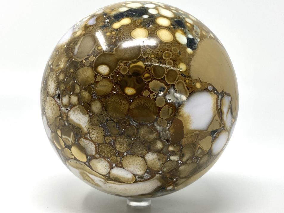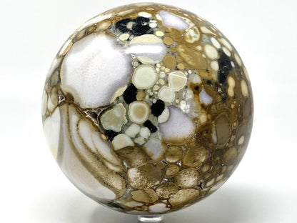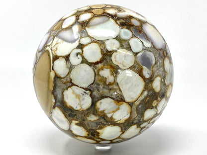 The Large King Cobra Jasper Crystal Sphere displays a mixture of large white, beige, and chocolate brown crystal orbs that contrast marvellously against each other in colour.