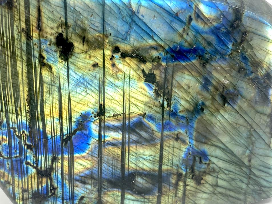 This Large Labradorite Free Shape displays iridescent gold and blue colours shining from within the stone.