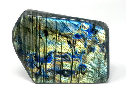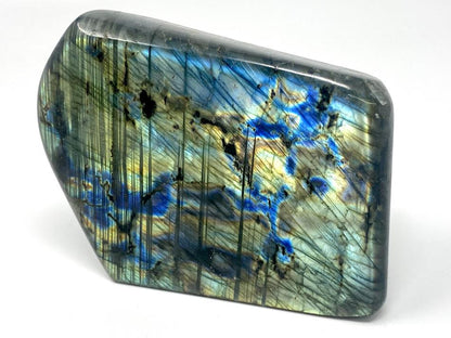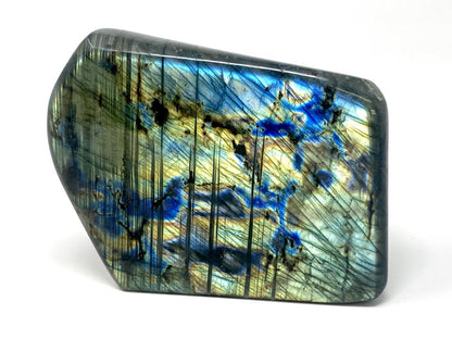 Measuring 12.7cm tall, this gorgeous stone has been cut by artisans into a striking Large Labradorite Freeform Shape.