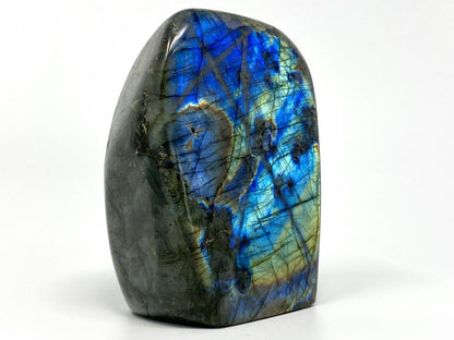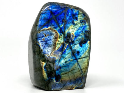 Measuring 11.9cm tall, this gorgeous stone has been cut by artisans into a striking Large Labradorite Freeform Shape.