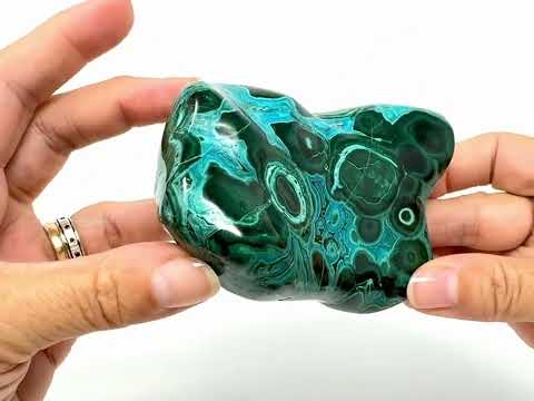 This Malachite and Chrysocolla crystal displays stunning swirls, orbs, and eye-like patterns.