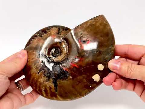 Due to their fiery hues, these red iridescent ammonites are often referred to as fire ammonites, although they are also sometimes called opalescent ammonites in reference to their opal-like appearance.
