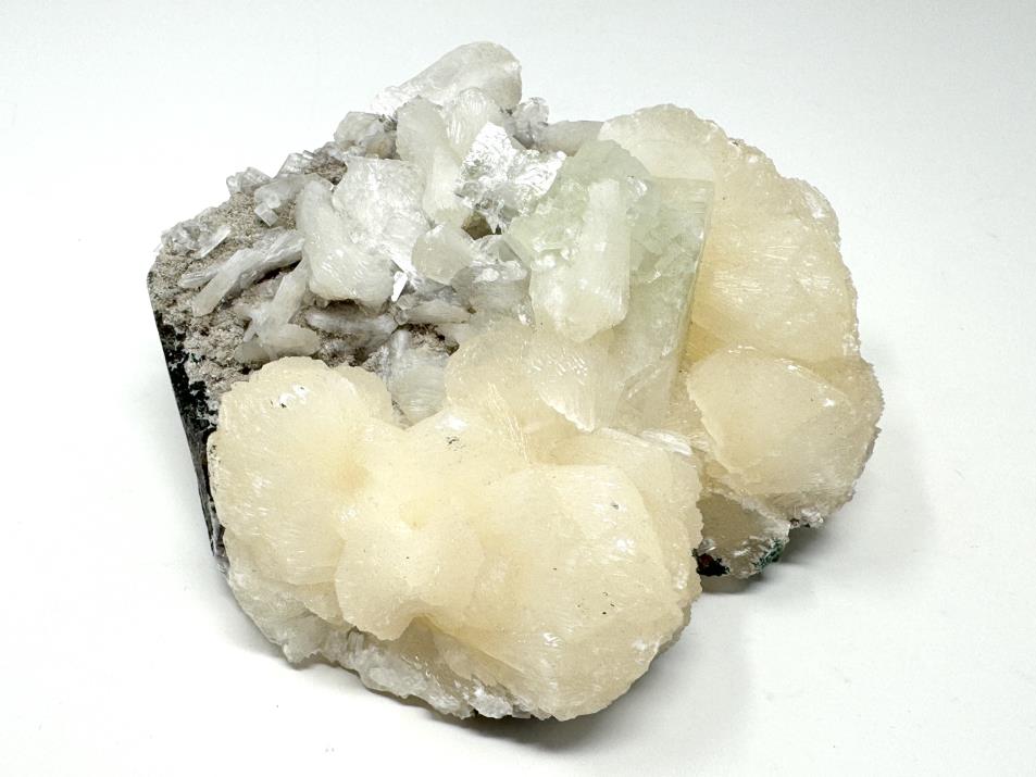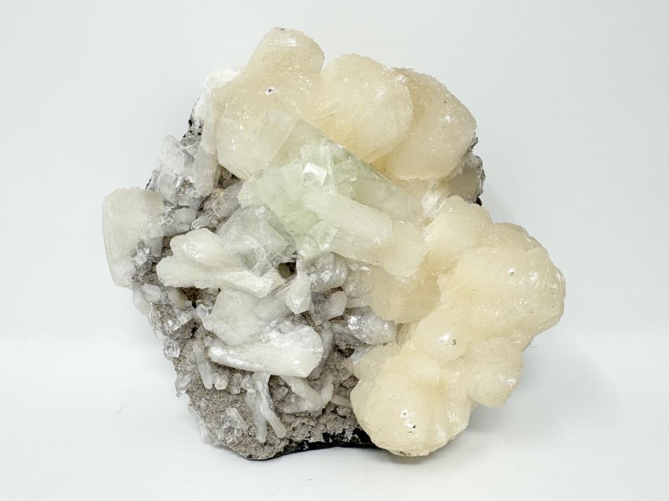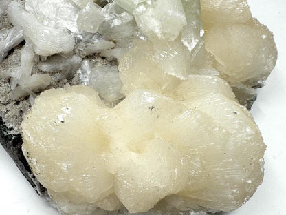 Zeolite Crystals also commonly grow alongside other crystals and minerals such as Quartz/ Chalcedony, Calcite, and Apophyllite, creating unique and unusual mineral specimens.