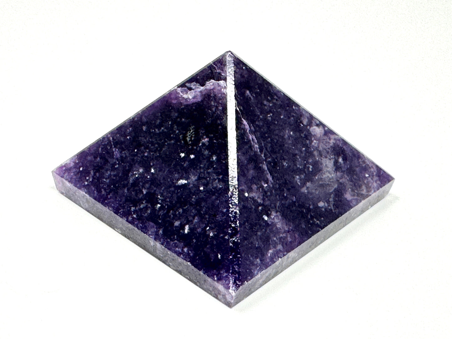 A polished Lepidolite Pyramid Crystal makes a wonderful companion piece to a piece of Gem Lepidolite/ a flashy Purple Lepidolite Gemstone, or to another Purple Crystal.