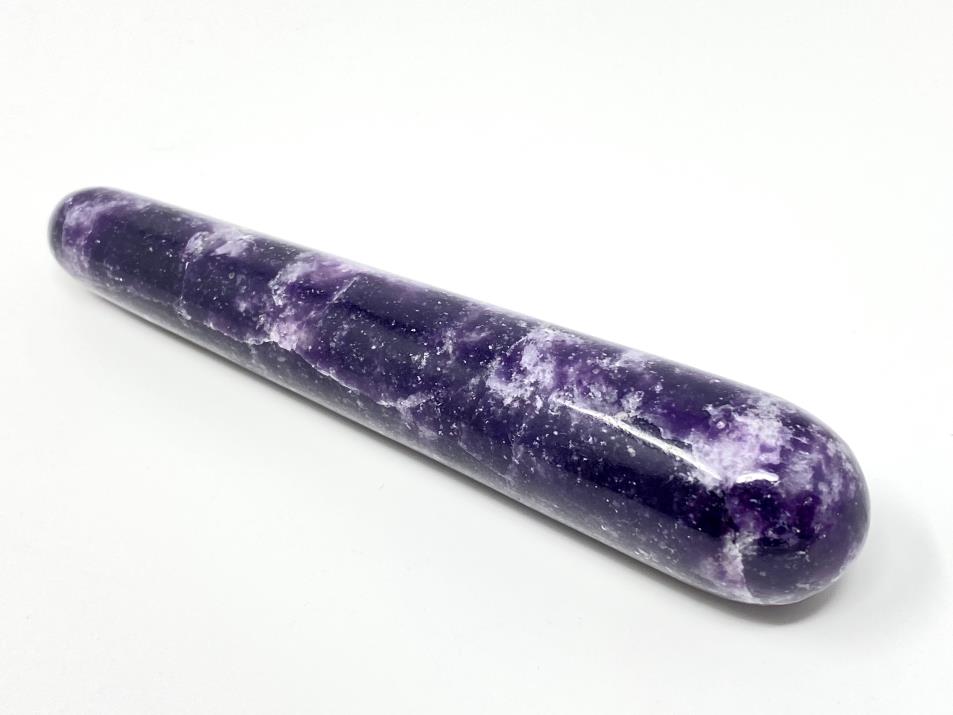 This gorgeous polished Purple Lepidolite Stone has been carefully cut and polished into a tactile, smooth crystal massage wand shape from Natural Lepidolite Crystals.
