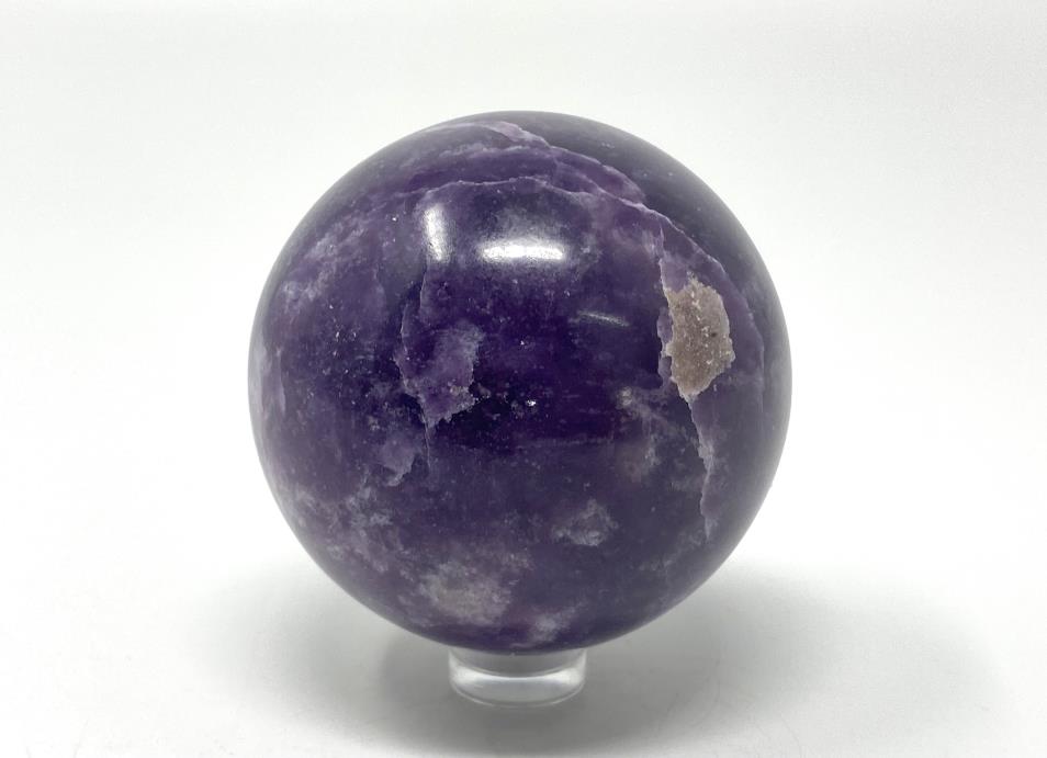 A polished Lepidolite Sphere makes a wonderful companion piece to a piece of Gem Lepidolite/ a flashy Purple Lepidolite Gemstone, or to another Purple Crystal.