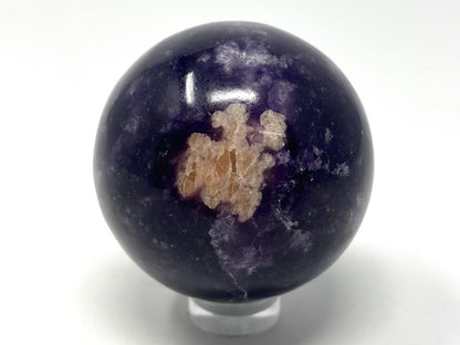 This unique Lepidolite Sphere also displays some gorgeous baby-pink and peach-coloured Feldspar inclusions.