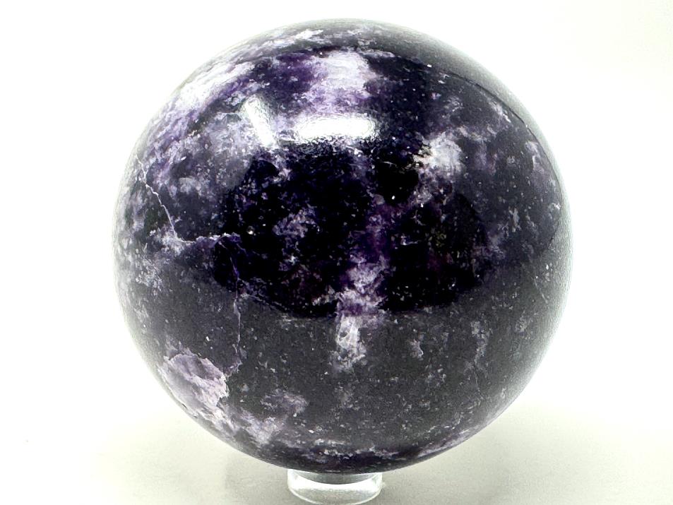 A polished Lepidolite Sphere makes a wonderful companion piece to a piece of Gem Lepidolite/ a flashy Purple Lepidolite Gemstone, or to another Purple Crystal.