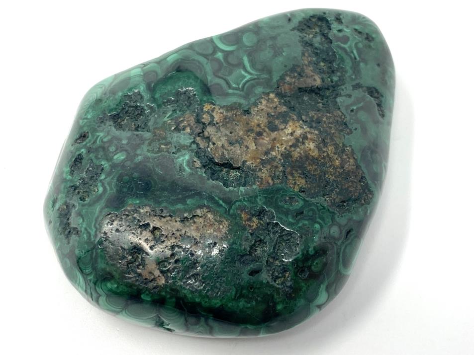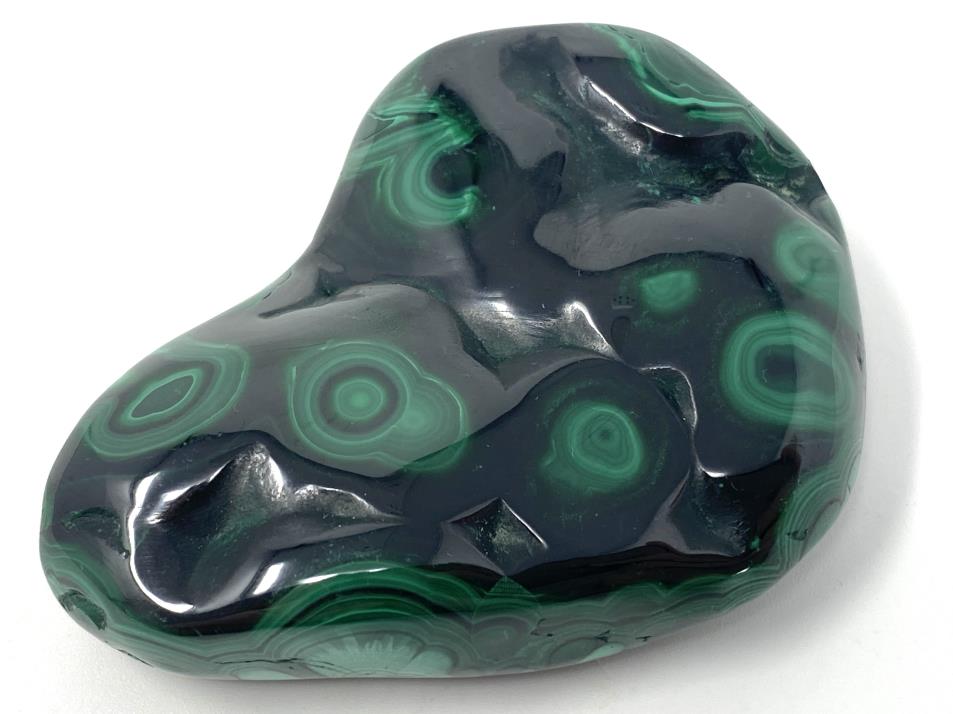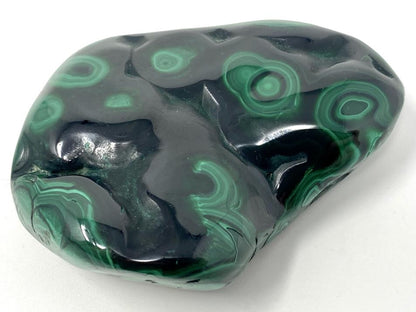 This gorgeous, high-quality Polished Malachite Crystal Freeform (also known as a Malachite Crystal Free Shape) measures 7cm long and displays a gorgeous leafy green hue topped with stunning swirls, orbs, and eye-like patterns.