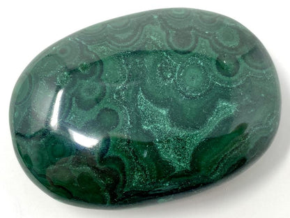 The Natural Malachite Crystal has been carefully cut into a tactile oval crystal palm stone shape and hand-polished to create a smooth Polished Malachite Palm Stone.