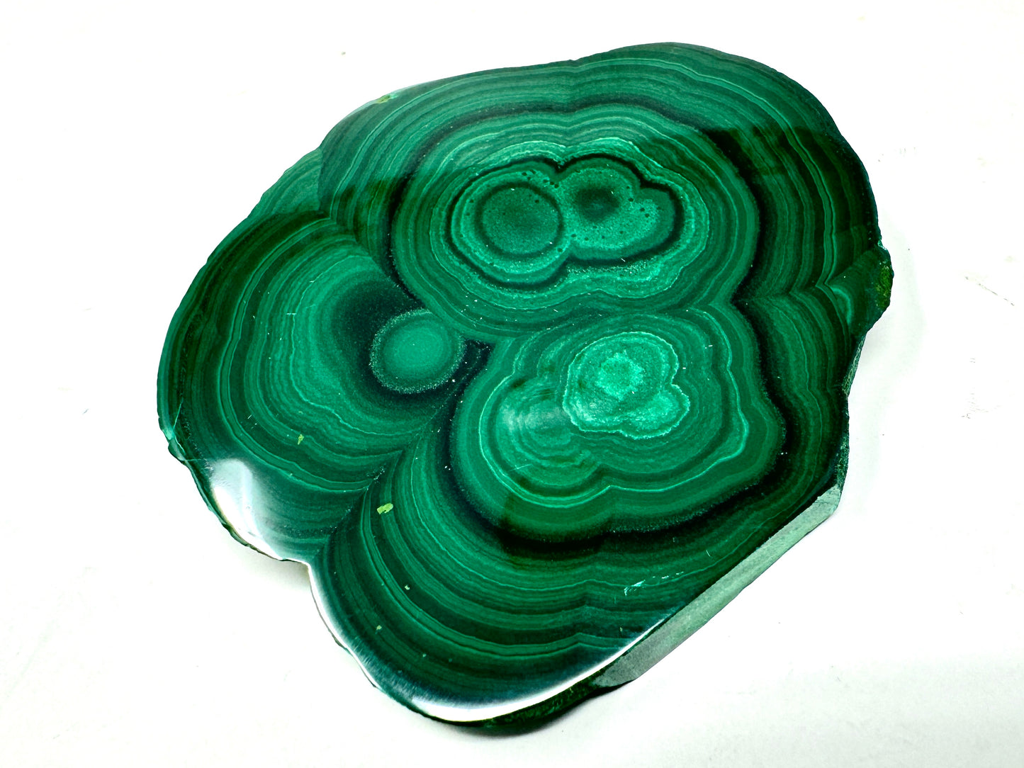 Please note: this Malachite Slice displays some small natural pits and cavities on its otherwise smooth, polished surface.