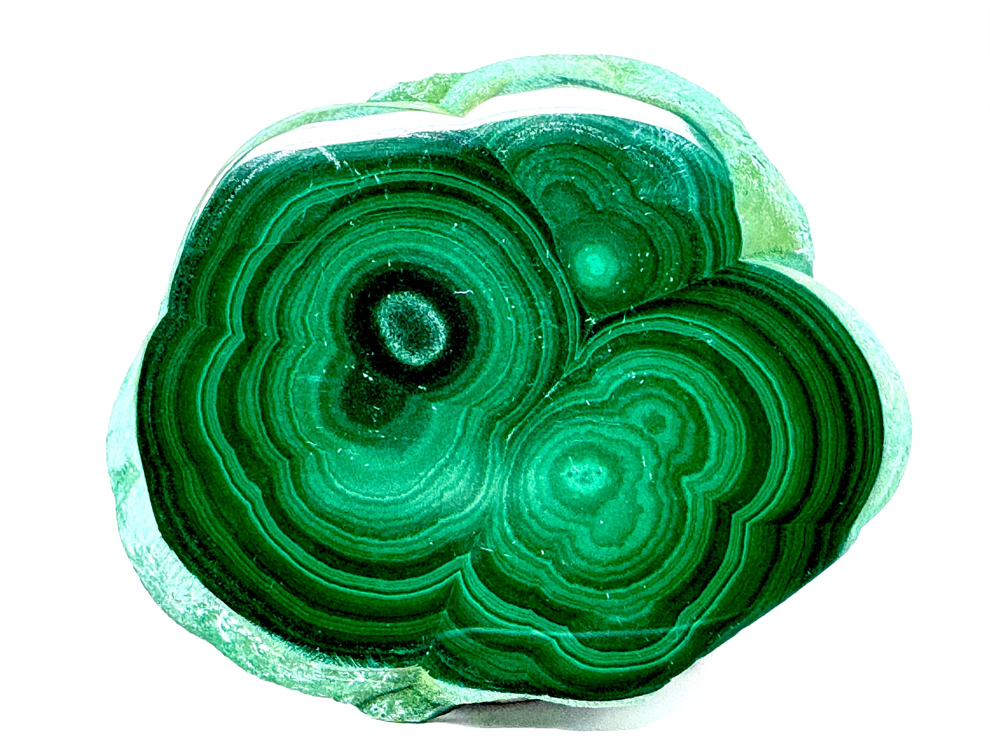 This gorgeous, high-quality Polished Malachite Crystal Slice measures 6.8cm long and displays a gorgeous leafy green hue topped with stunning swirls, orbs, and eye-like patterns.