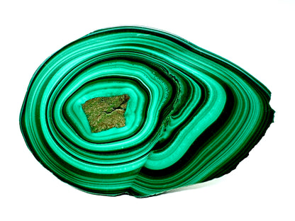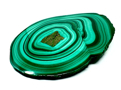 Please note: this Malachite Slice displays some small natural pits and cavities on its otherwise smooth, polished surface.