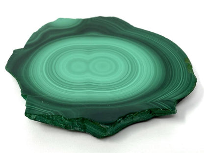 Please note: this Malachite Slice displays some small natural pits and cavities on its otherwise smooth, polished surface.