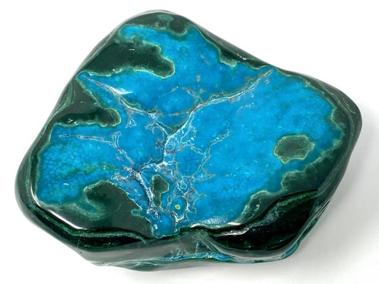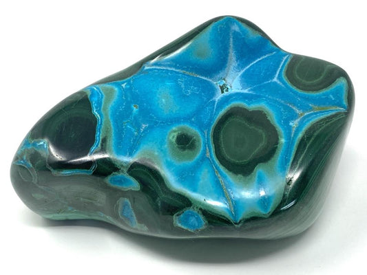 Polished Malachite Stones are vibrant green crystals that show off a gorgeous range of green hues; from bright, vivid greens to dark, leafy greens and greens that are almost black in hue.