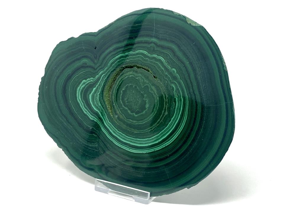 This gorgeous, high-quality Large Polished Malachite Crystal Slice measures 14.5cm long and displays a gorgeous leafy green hue topped with stunning swirls, orbs, and eye-like patterns.
