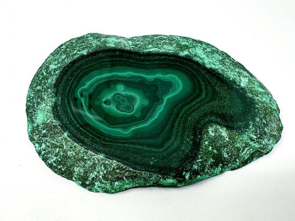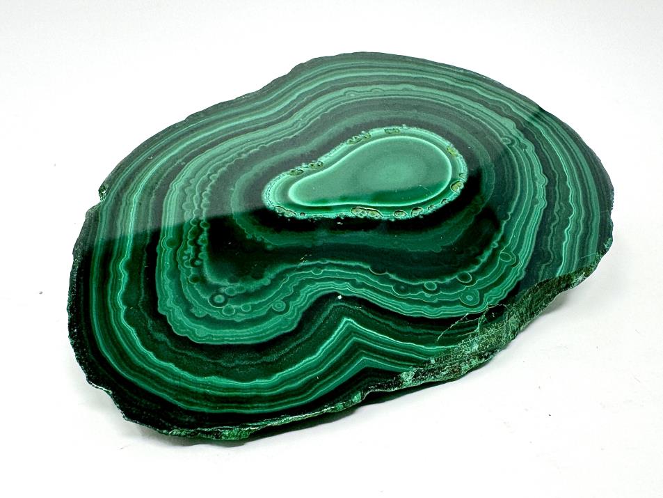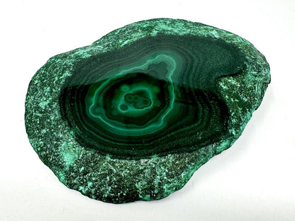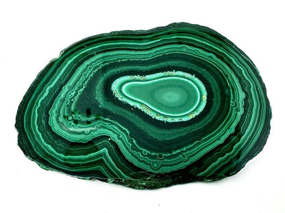 Please note: this Malachite Slice displays some small natural pits and cavities on its otherwise smooth, polished surface.