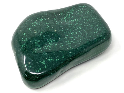 Measuring 3.5 to 4 on the Mohs scale, Malachite is a relatively soft mineral and great care should be taken whilst handling and storing it to ensure its surface does not become damaged.
