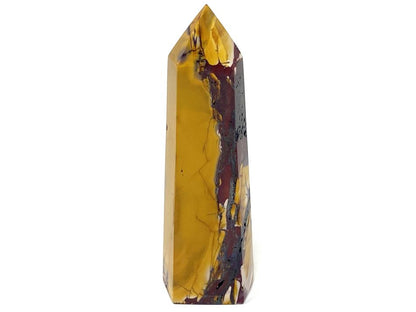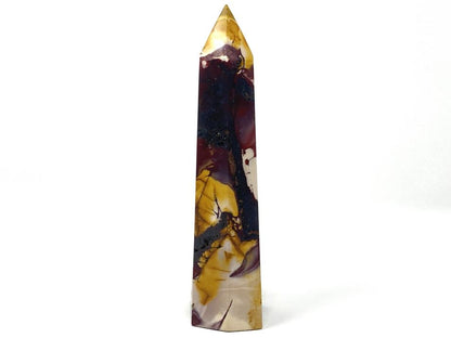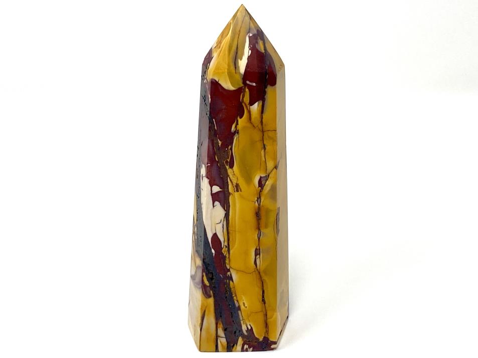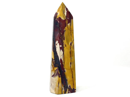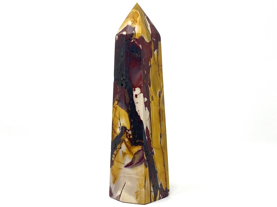 This stunning free-standing Large Mookaite Jasper Crystal Point measuring 17.8cm tall has been carefully hand-polished to enhance its vibrant kaleidoscope of colour, which includes vibrant brick-reds, mustard-yellows, maroons, and sharp white tones.