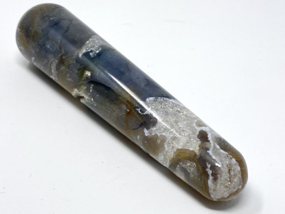 This gorgeous Druzy Moss Agate Crystal Massage Wand (also known as a Druzy Tree Agate Crystal Massage Wand) measuring 11.5cm long has been carefully cut and polished into a rounded crystal wand shape from Green Moss Agate Stone.