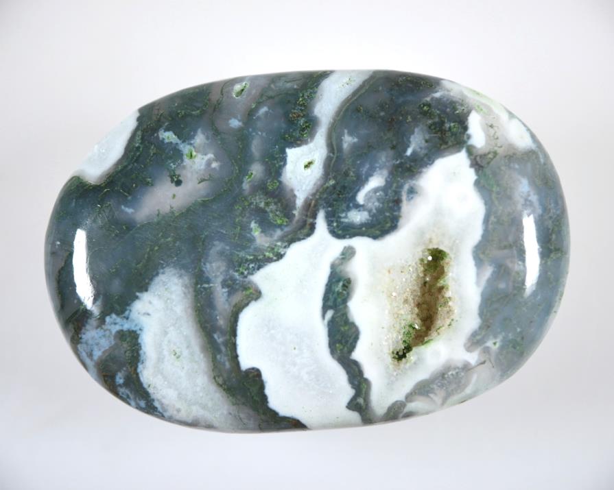 Due to their tree-like, moss-like dendritic patterning, Moss Agate Stones (Tree Agate Stones) have a strong connection to the Earth and Natural World, resonating powerfully with nurturing, grounding, protective Earth Energy which facilitates both personal safety/security and personal growth.