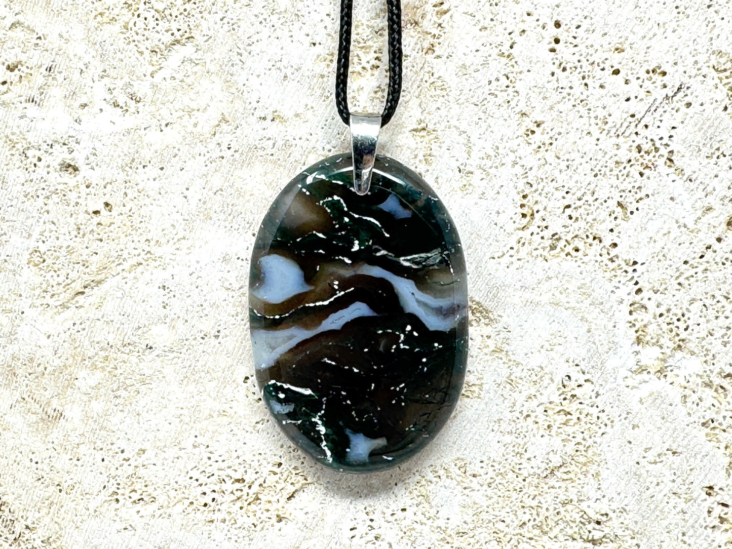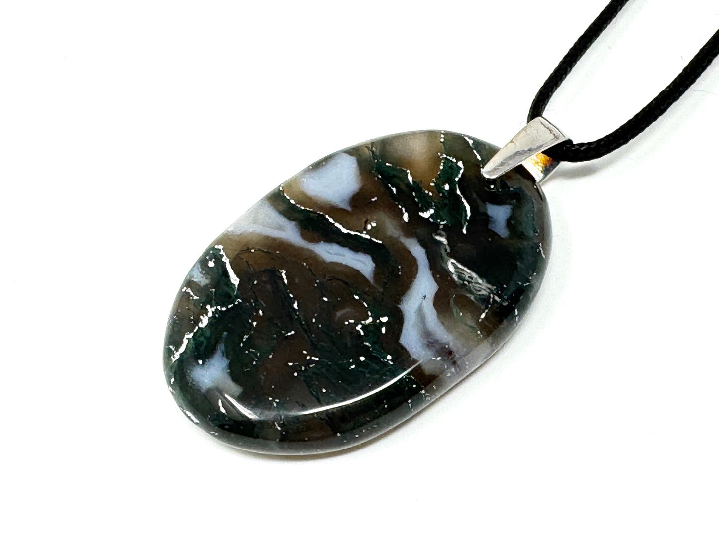 This gorgeous Moss Agate Pendant (Tree Agate Pendant) is ideal for the crystal collector or crystal healer, and makes a wonderful crystal gift for loved ones: each Moss Agate Crystal (Tree Agate Crystal) is truly unique due to their individual mineral inclusions and patterns.
