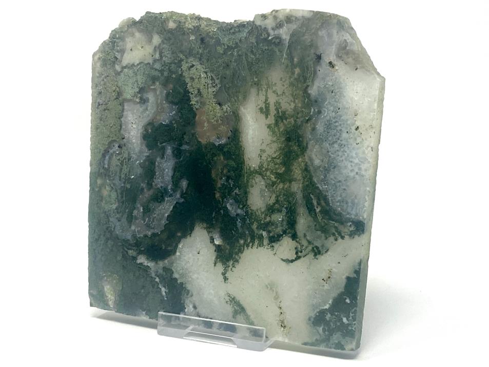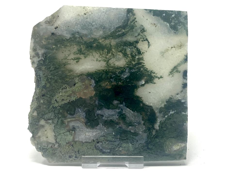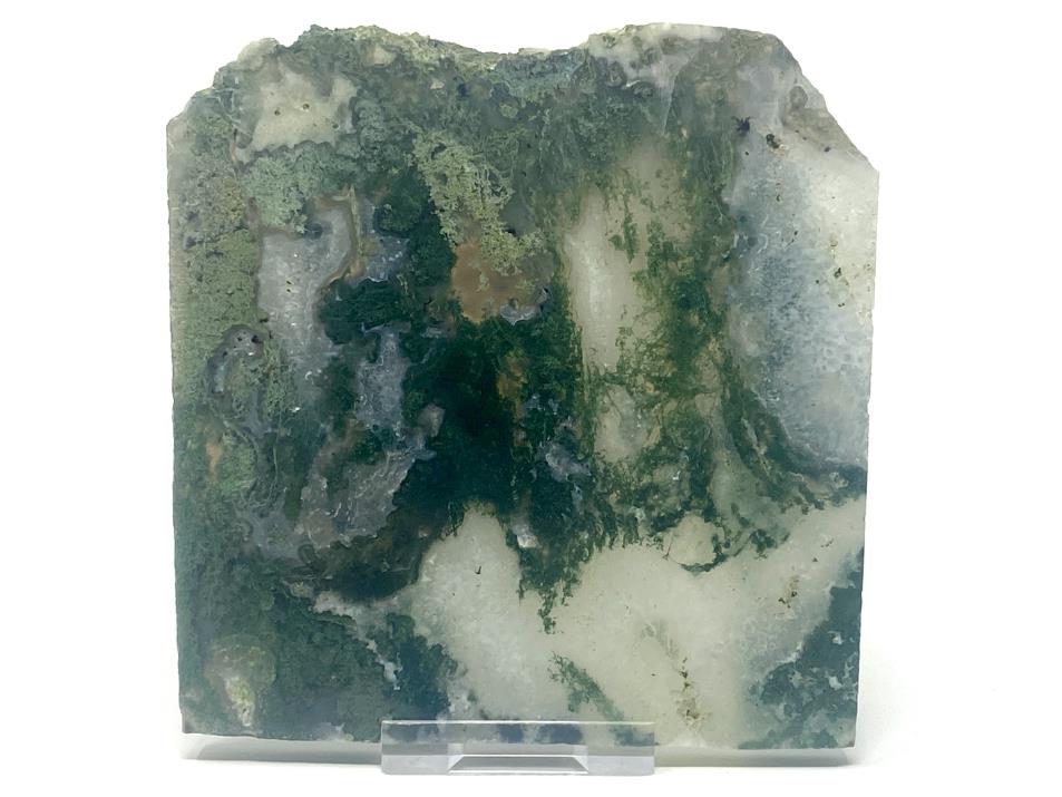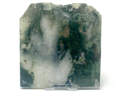 This gorgeous Moss Agate Crystal Slice (also known as a Tree Agate Crystal Slice) measuring 11cm long has been carefully cut and polished into a square-like crystal slice shape from Green Moss Agate Stone.