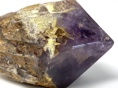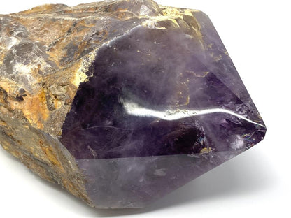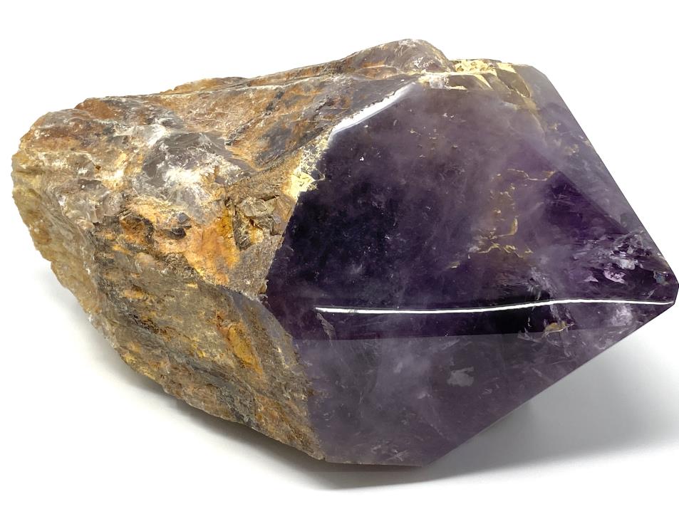This Large Natural Amethyst Crystal displays a stunning polished point atop a rough, natural, tapered base.