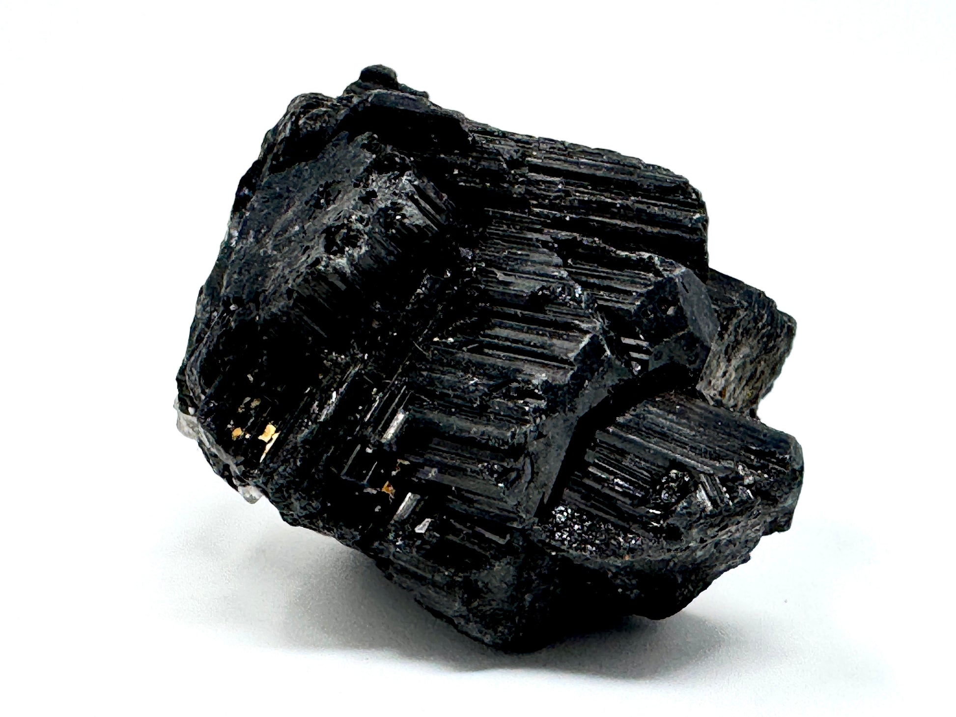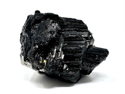 Displaying lustrous, glistening inky black tones, this Natural Black Tourmaline Crystal is smooth to the touch in some places with slightly raised ridges.