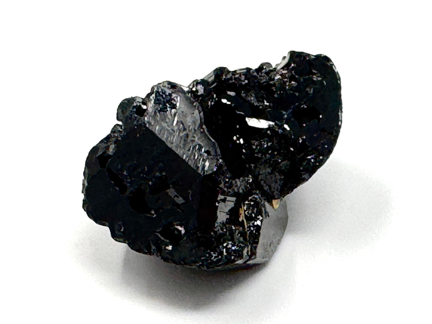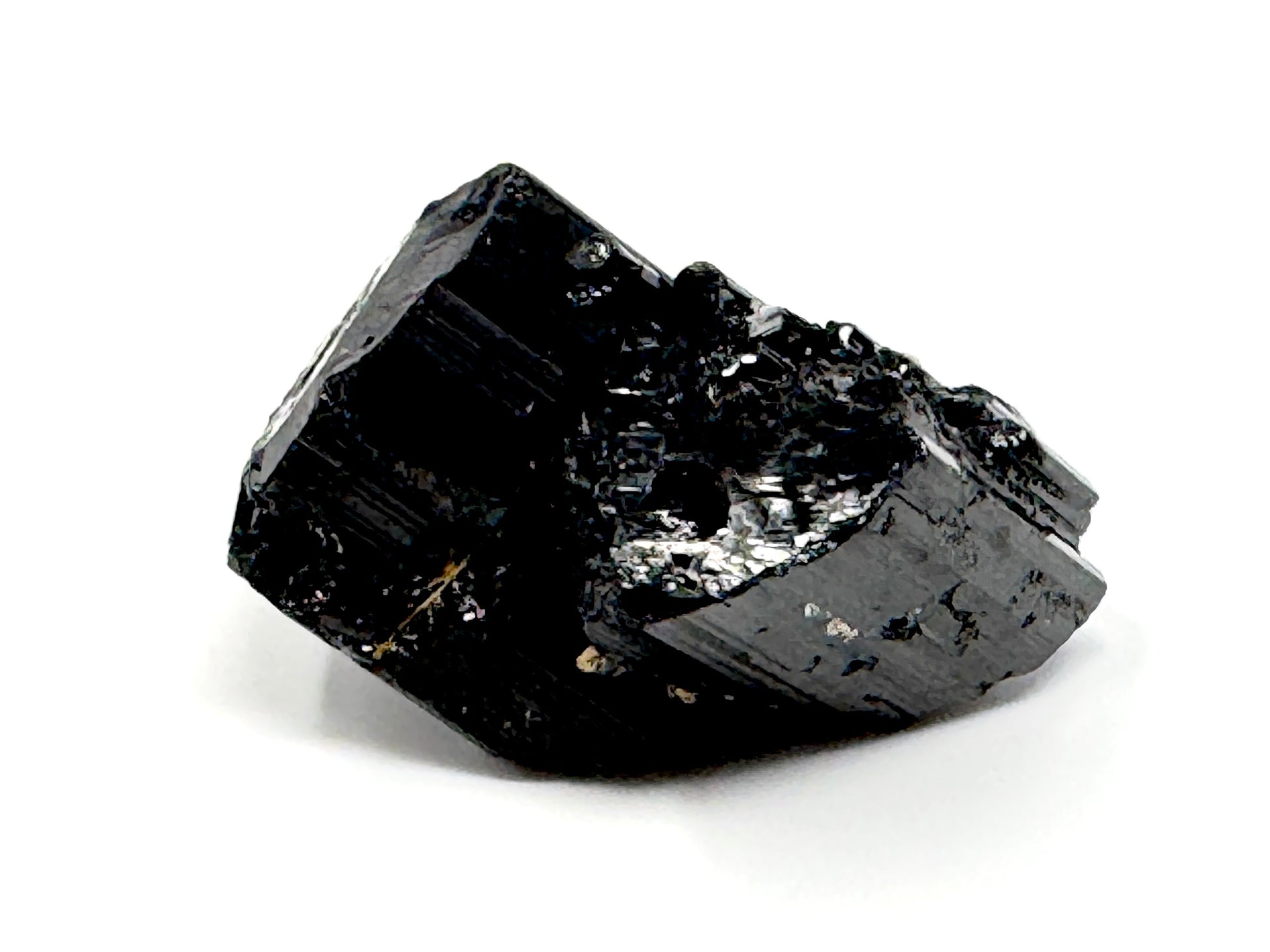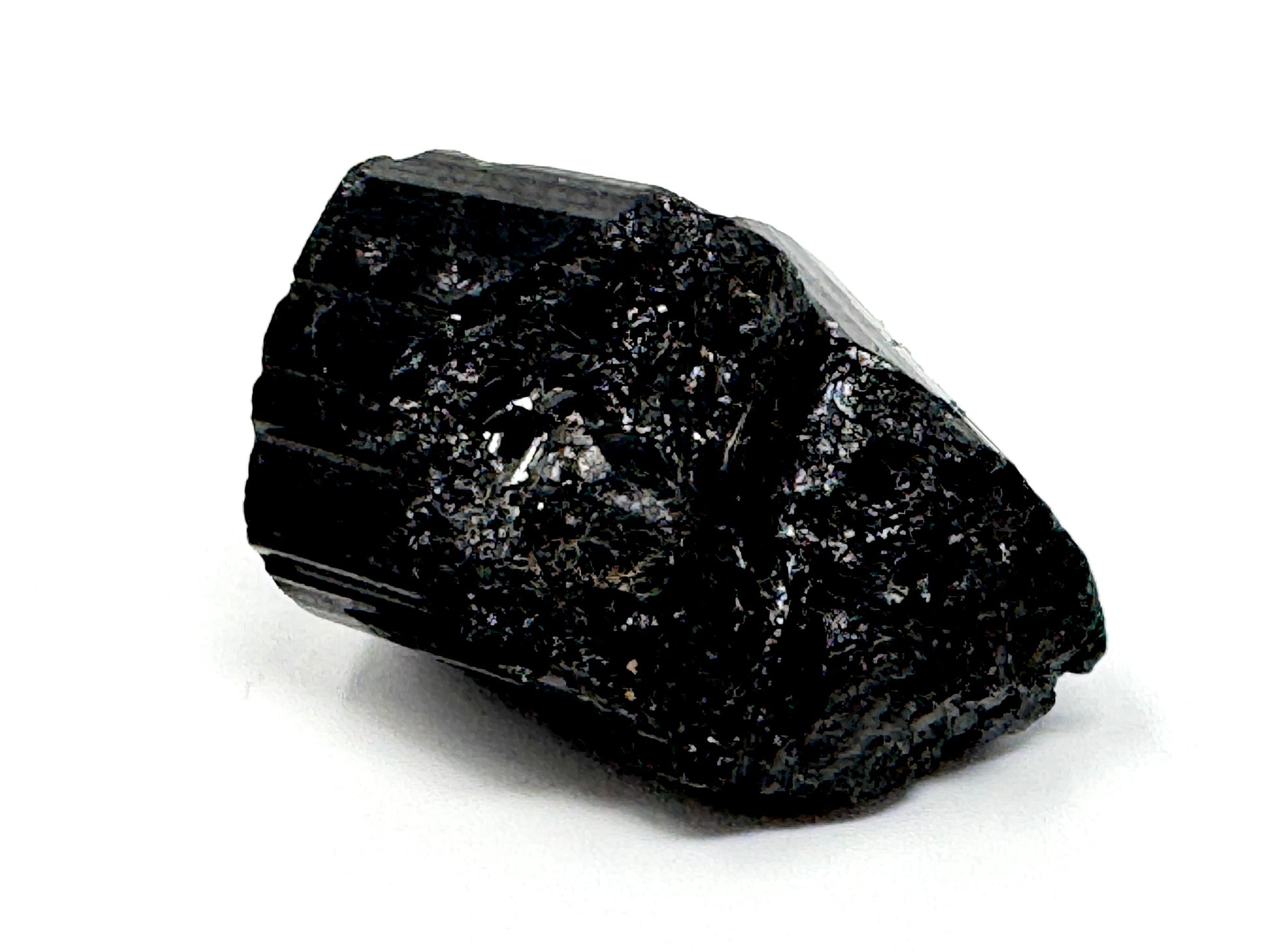 Displaying lustrous, glistening inky black tones, this Natural Black Tourmaline Crystal is smooth to the touch in some places with slightly raised ridges.