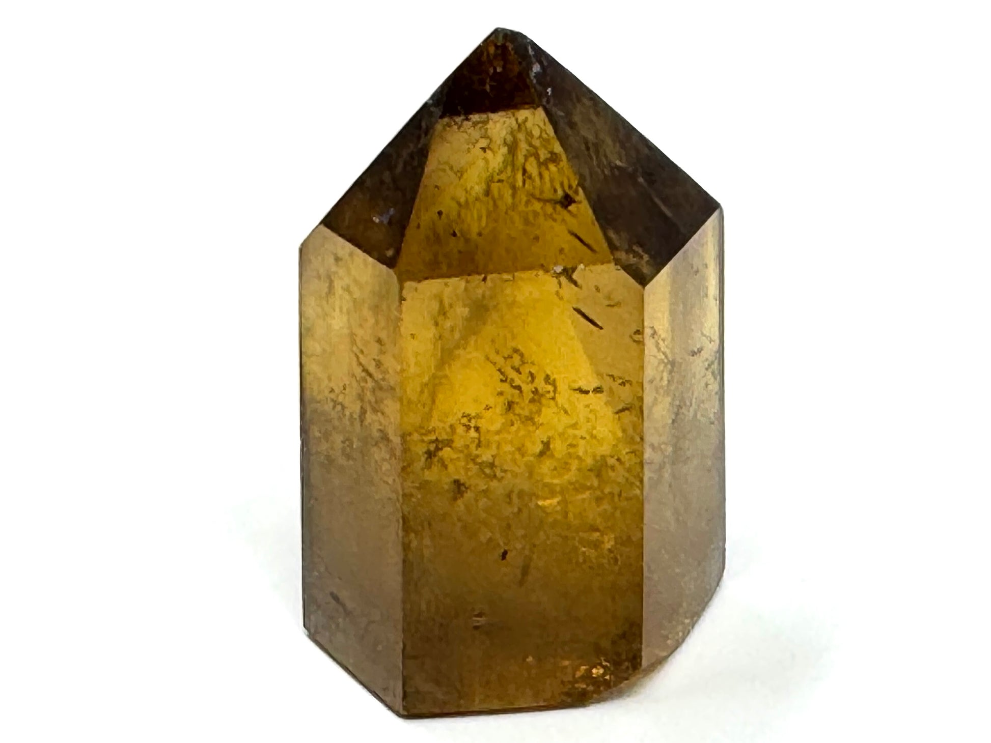 Natural Polished Citrine crystal point for sale from Madagascar. This elegant Natural Citrine specimen is 5.2cm Tall and has wonderful clarity. Citrine is a gorgeous variety of quartz which has a completely natural colour; it has not been treated in any way, preserving its alluring yellow-gold tint.Polished to a very high standard to expose its natural golden beauty.Some of the citrine from Madagascar can have inclusions of Hematite or gold inclusions of lepidocrocite.