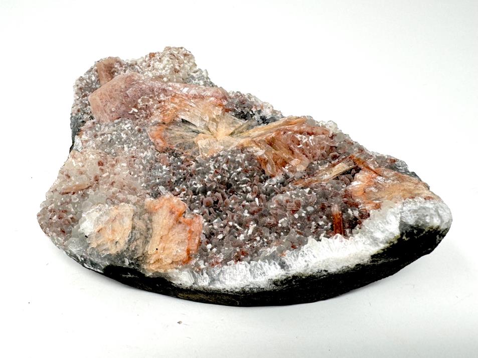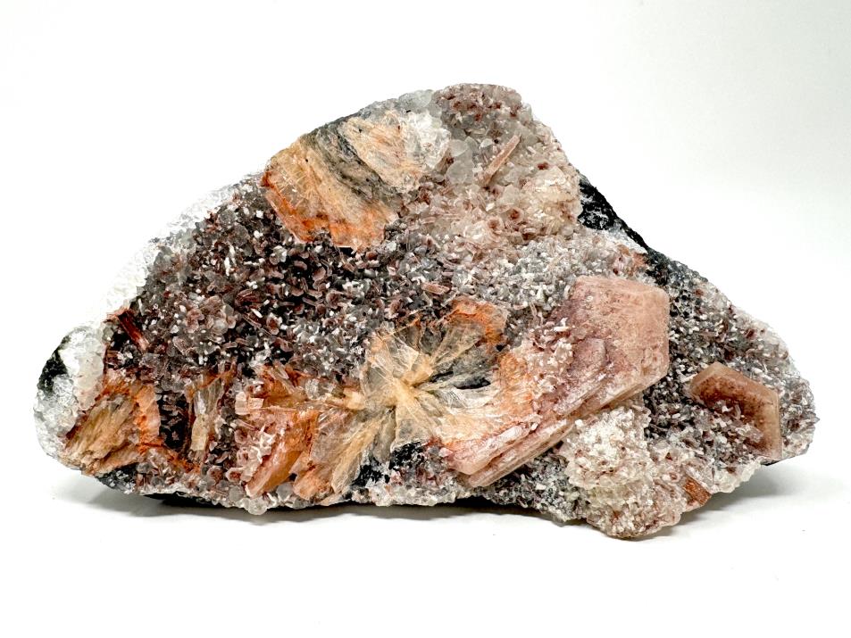 This gorgeous Natural Zeolite Crystal measures 12cm long and displays a stunning cluster of natural crystals which showcases a diverse range of crystal colours, shapes, and sizes, including glistening orange Stilbite Crystals.